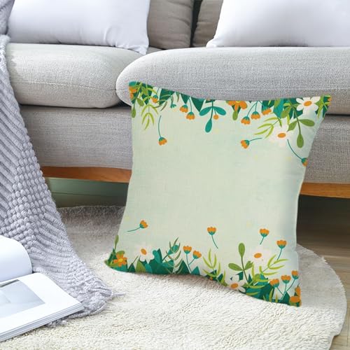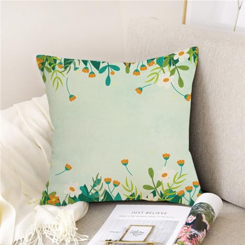 Epinki 40x40cm Zierkissenhülle, Dekokissen 1 Pcs mit Blumen und Blätter Muster Motiv Bequem Leinen für Zuhause Autos Wohnzimmer Schlafzimmer Büro Sofa Dekor, Leinen, Grün Orange
