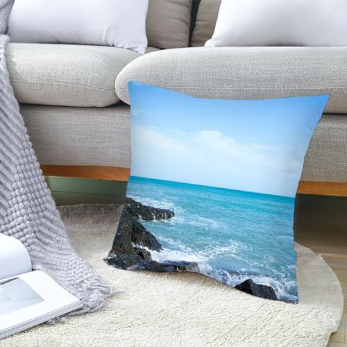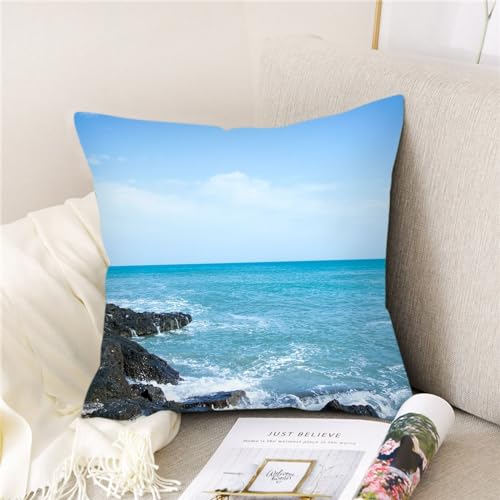 Epinki 40x40cm Zierkissenhülle, Dekokissen 1 Pcs mit Meer und Himmel Motiv Bequem Polyester für Zuhause Autos Wohnzimmer Dekoration, Polyester, Blau Grün