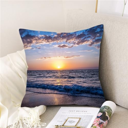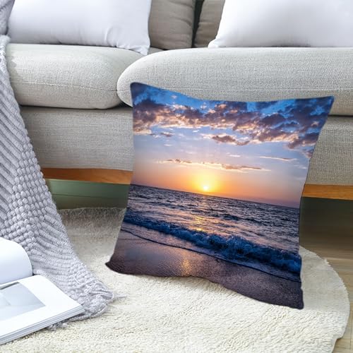 Epinki 40x40cm Zierkissenhülle, Weiche Dekokissen 1 Pcs mit Sonnenuntergang am Meer Motiv Bequem Polyester für Zuhause Autos Wohnzimmer Schlafzimmer Dekoration, Polyester, Gelb Lila