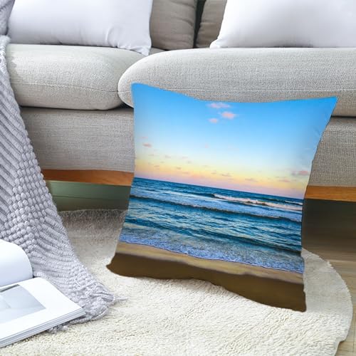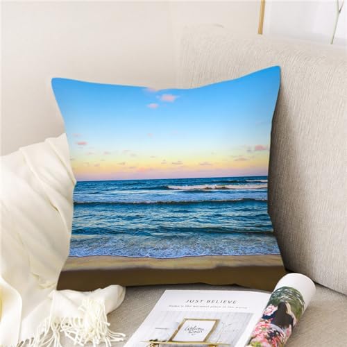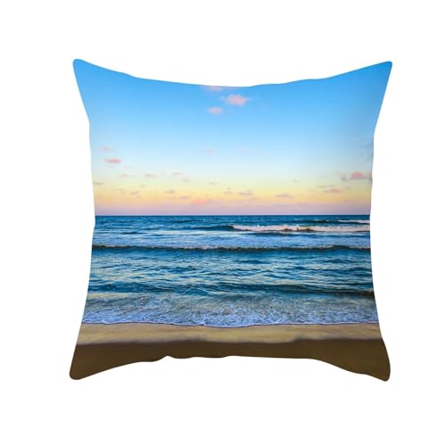 Epinki 45x45cm Zierkissenhülle, Dekokissen 1 Stücke mit Himmel Meer Strand Motiv Bequem Polyester für Autos Wohnzimmer Schlafzimmer Sofa Dekor, Polyester, Blau Braun