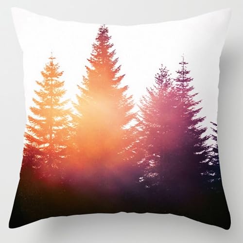 Epinki 45x45cm Zierkissenhülle, Dekokissen 1 Stücke mit Wald Motiv Bequem Polyester für Zuhause Wohnzimmer Schlafzimmer Büro Dekor, Stil 5-1Pcs, Orange Rosa Schwarz