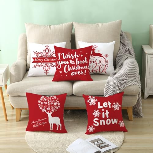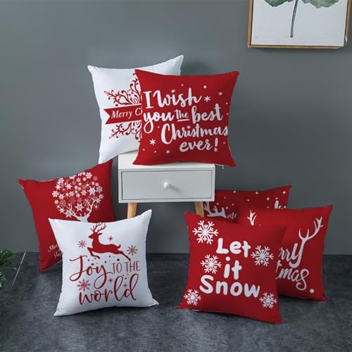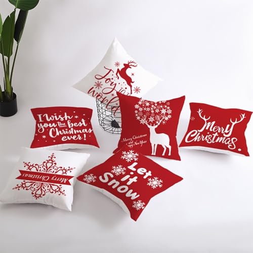 Epinki Kissenbezüge 45x45cm, Merry Christmas Weihnachtsbaum Motiv Dekokissen Polyester für Sofa Schlafzimmer Büro Auto Dekoration, Weiß Rot