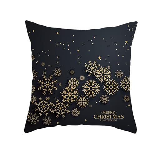 Epinki Kissenbezüge Weihnachten 45x45cm, Schneeflocke Motiv Dekokissen Polyester Weich Bequem, Quadratische Kissenhülle für Autos Wohnzimmer Schlafzimmer Dekor, Gold Schwarz