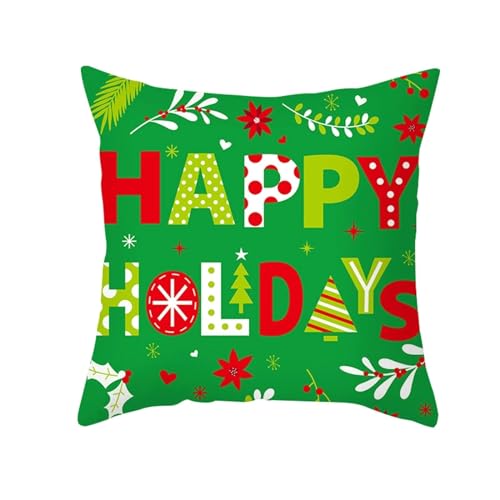Epinki Kissenbezug Weihnachten 45x45cm, Happy Holidays Motiv Dekokissen Polyester Weich Bequem, Quadratische Kissenhülle für Zuhause und Sofa, Schlafzimmer Dekoration, Rot Grün