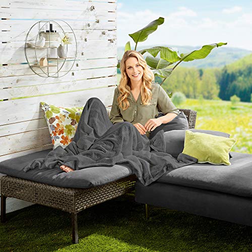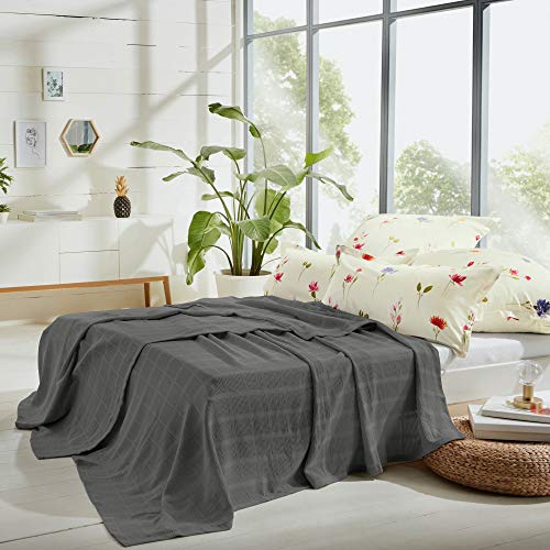 Erwin Müller Sommerdecke, leichte Baumwolldecke, Häkeldecke Farbe grau, Größe 150×200 cm – luftig leicht, weiche Qualität, pflegeleicht (weitere Farben und Größen)