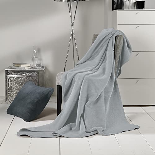 Erwin Müller Wohndecke Brescia Uni hellgrau Größe 150×220 cm – schmuseweicher Flor, mollig warm und temperaturausgleichend