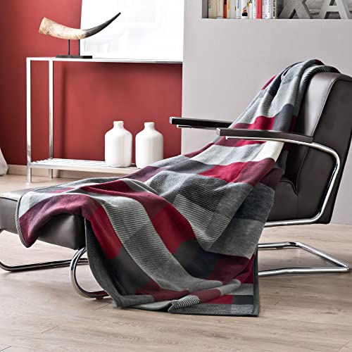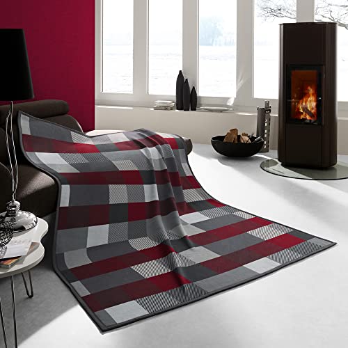 Erwin Müller Jacquard Wohndecke. Ein Traum statt dessen gemütliche Stunden auf dem Sofa. Stark einladend wirkt das fantasievolle Karo-Formblatt in gelungener Farbharmonie. Sicher lassen Sie sich von der angenehmen Ordnung verwöhnen, sie ist kuschelweich, hautsympathisch, atmungsaktiv, temperaturausgleichend außerdem strapazierfähig. Komplett durch Veloursband angegrenzt.