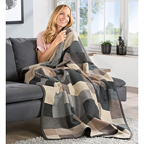 Erwin Müller Wohndecke – grau Größe 150×200 cm – kuschelig – mit Verloursband-Einfassung – Wolldecke – Plaid – atmungsaktiv