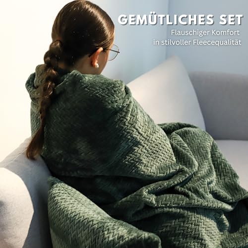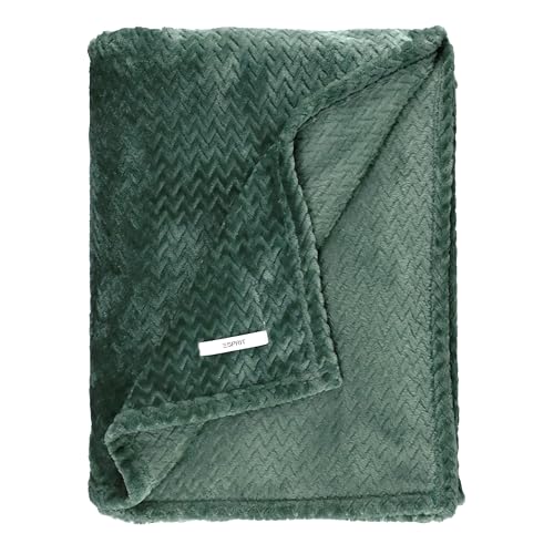 Esprit Premium Wohndecken-Set – Kuscheldecke 140x190cm + Kissenhülle 45x45cm – Oeko-TEX Tagesdecke mit Dekokissenbezug – Flauschige Sofadecke Set – Decke & Kissenbezug Grün