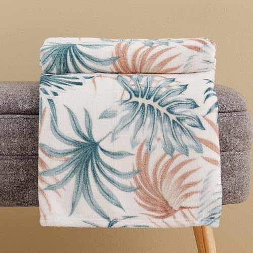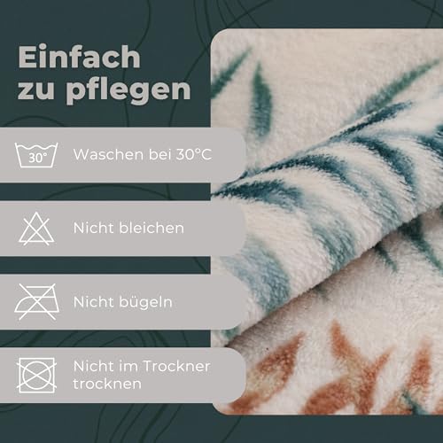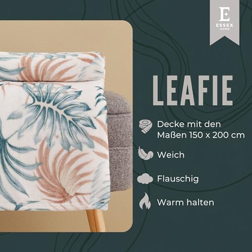 ESSEX – Kuscheldecke Leafie, 150 x 200 cm, Decke, 100% Polyester, Sofadecke, Blumen – Beige