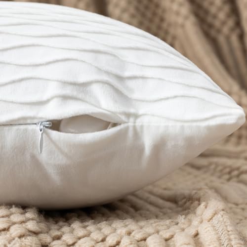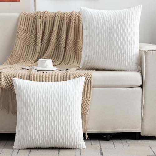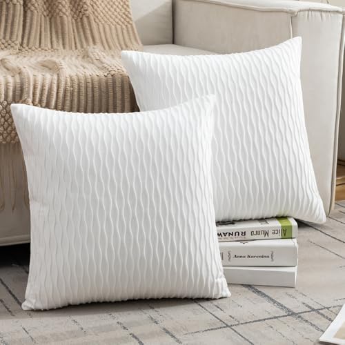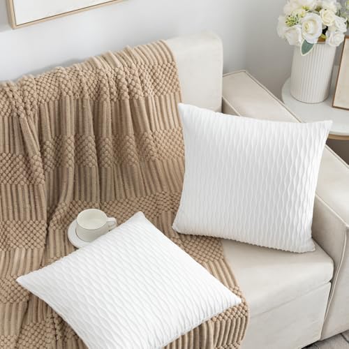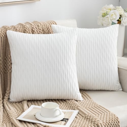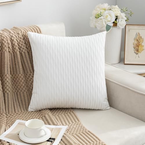 ETASOP Dekokissen mit Einsätzen im Lieferumfang enthalten, 45,7 x 45,7 cm, 2 Stück, Samt-Kissenbezüge mit Einsätzen, Bauernhaus-Heimdekoration (weiß)
