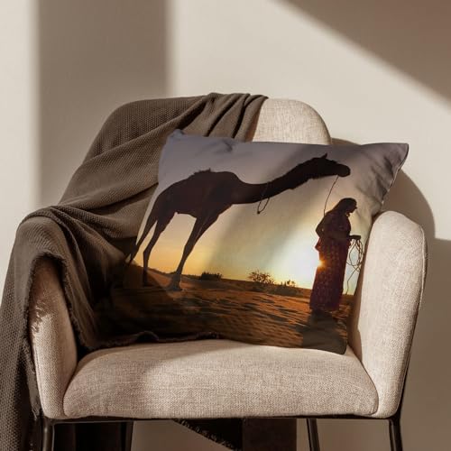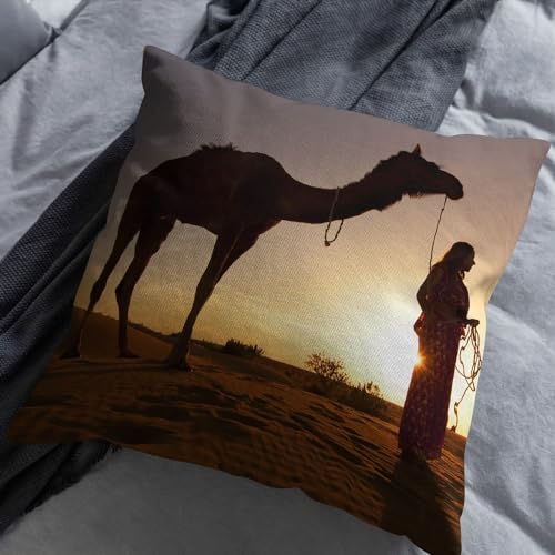✅Hochwertiges Leinenmaterial: Dieser Kissenbezug mit „Camel at Dusk“-Aufdruck ist aus erstklassigem Leinenstoff gefertigt, der sich luxuriös weich anfühlt und maximalen Komfort und Haltbarkeit gewährleistet.