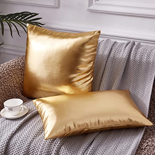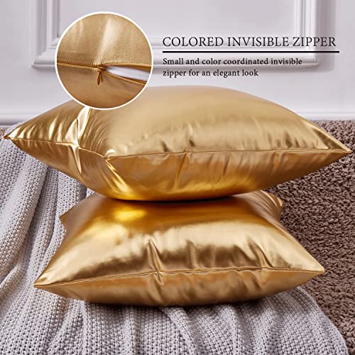 EUCIOR Dekoratives Kissen, goldfarbene Kissenbezüge, 55,9 x 55,9 cm, moderner metallischer glänzender Kissenbezug, Dekokissen für Bett, Couch, Sofa, goldfarbene Kissen