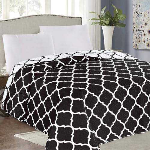 Euromat Tagesdecke Steppdecke Bettüberwurf (Ohne Kissenbezüge) Größe: 220×240 cm (Schwarz Weiß – Marokkanischer Meridian -SY-1706)