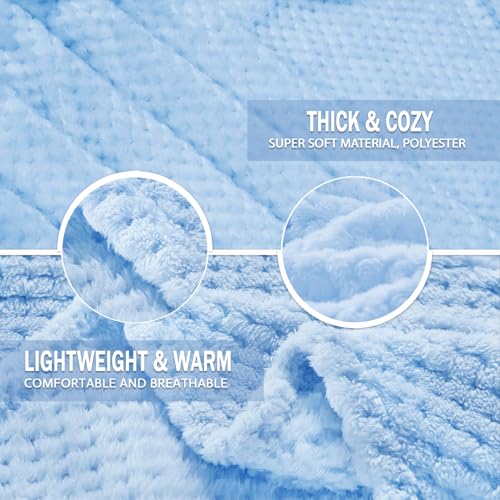 Exclusivo Mezcla Decke Kuscheldecke Flauschig Fleecedecke Wohndecke mit Waffelmuster – Leichte, Abzweigung und Warme Sofadecke Bettüberwurf, 130×170 CM Hellblau