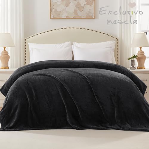 Exclusivo Mezcla Decke Kuscheldecke Flauschig Fleecedecke Wohndecke mit Waffelmuster – Leichte, Abzweigung und Warme Sofadecke Bettüberwurf, 150×200 CM Schwarz