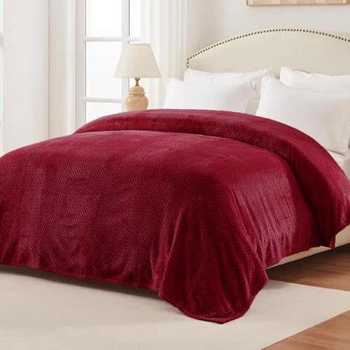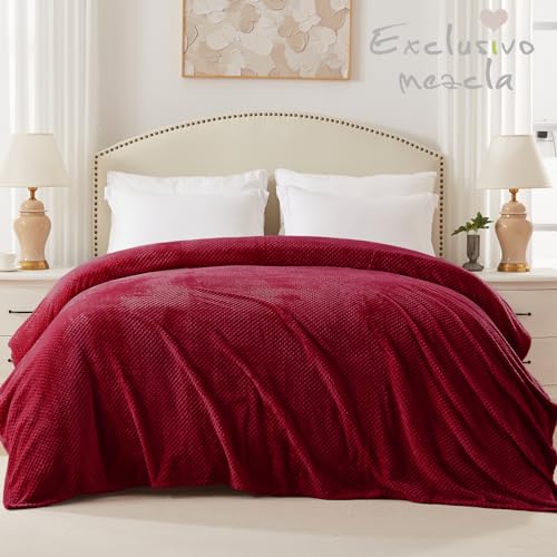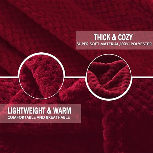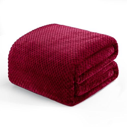 Exclusivo Mezcla Decke Kuscheldecke Flauschig Fleecedecke Wohndecke mit Waffelmuster – Leichte, Gabelung und Warme Sofadecke Bettüberwurf, 150×200 CM Weinrot