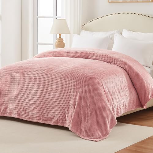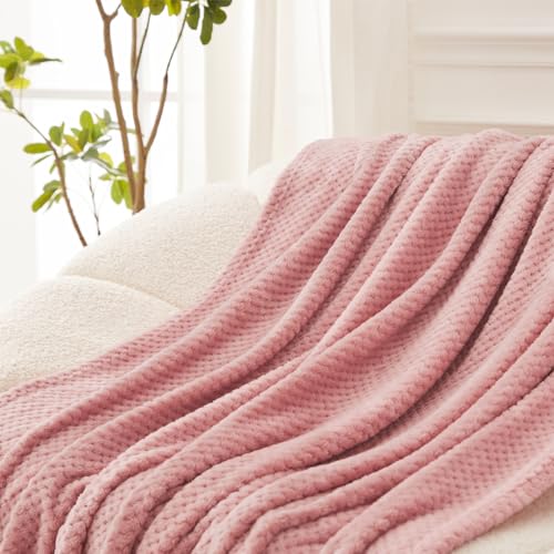 Exclusivo Mezcla Decke Kuscheldecke Flauschig Fleecedecke Wohndecke mit Waffelmuster – Leichte, Abzweigung und Warme Sofadecke Bettüberwurf, 220×240 CM Rosa
