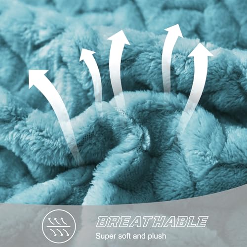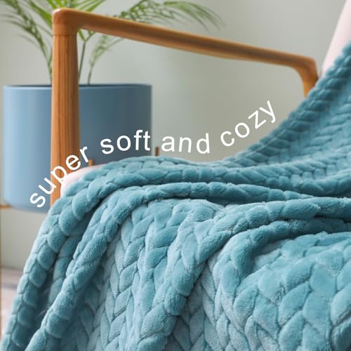 Exclusivo Mezcla Kuscheldecke Flanell-Fleecedecke mit Blättermuster,130 x 170 cm Sofadecke für Ganzjahreszeit, Flauschig und Warm, Schieferblau