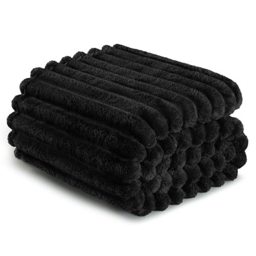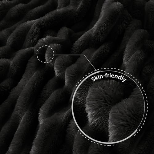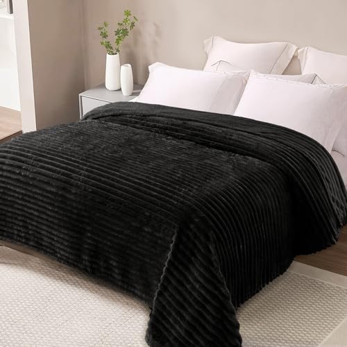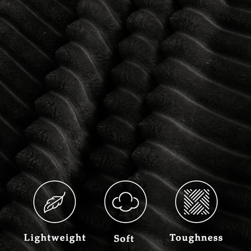 Exclusivo Mezcla Kuscheldecke Flauschig Fleecedecke Flanell Decke, Leichte und Warme Wohndecke Tagesdecke für Ganzjahreszeit, 220 x 240 cm Schwarz