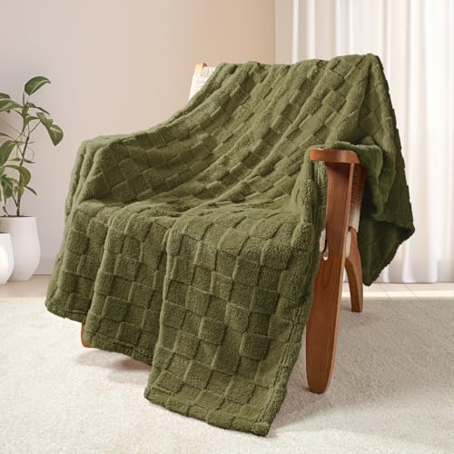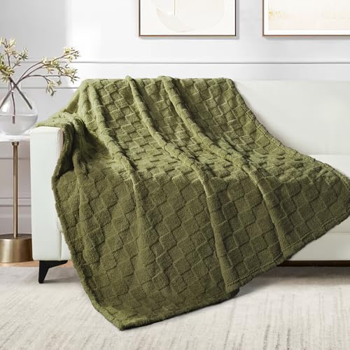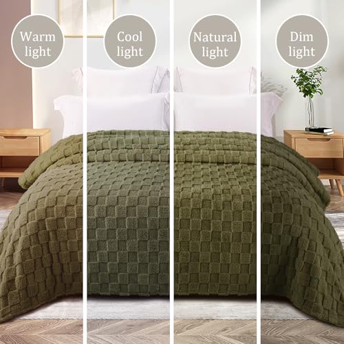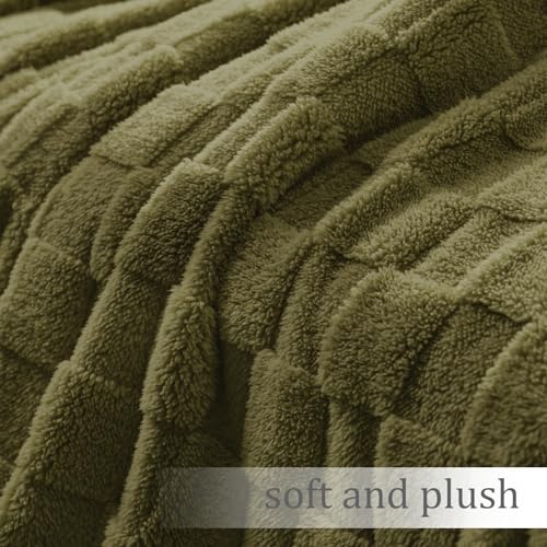 Exclusivo Mezcla Kuscheldecke Fleece-Decke, Superweiche 3D Karierte Sofadecke, Flauschige Decke für alle Jahreszeiten, 130 x 150 cm, Olivgrün
