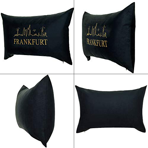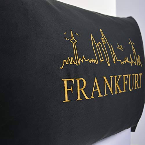 EXPRESS-STICKEREI Frankfurt Kissen mit Füllung & Motiv Stadt/City Deutschland Geschenk Souvenir Wohnzimmer Dekokissen Zierkissen Skyline Sofakissen groß Polsterüberzug | 40x60cm | schwarz