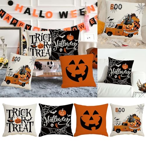 🎃【Festliches Halloween】 Sie Ihr Mit DiesenHalloween-Kissenbezügen, Die Für Alle Kisseneinsätze Der Größe 45×45 cm Geeignet Sind. EinsÄtze Sind Nicht Inbegriffen. Sie Ackern Sofort Eine Atmosphäre Abändern Ihr Halloween-Setup. Lass Uns Trick Oder Trick Spielen.