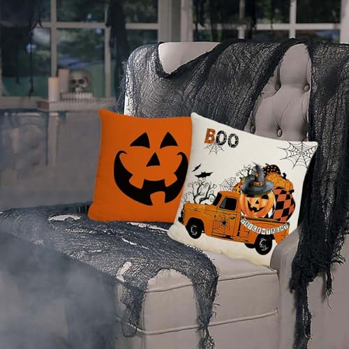 Fall Kissenbezug 45×45 Kissen Kissenbezüge Kissenhülle Herbstdeko Innen Modern Wohnzimmer Dekokissen Kürbisse Kissen für Halloween Deko Orange