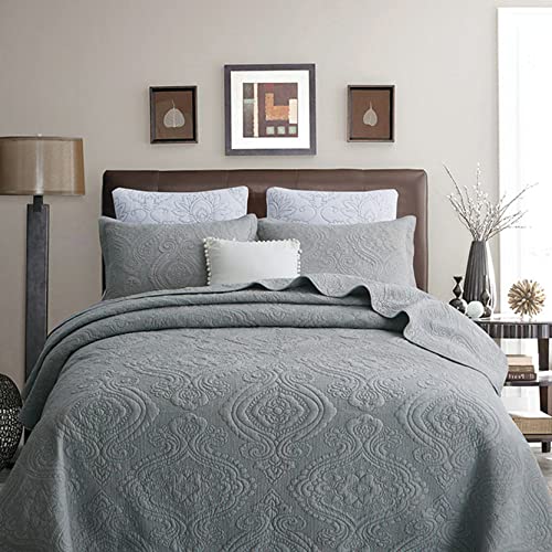Quilted Bedspread King Size,Wollig Microfiber Bed Throw Coverlet with 2 pillow cases for Bedroom Decor
