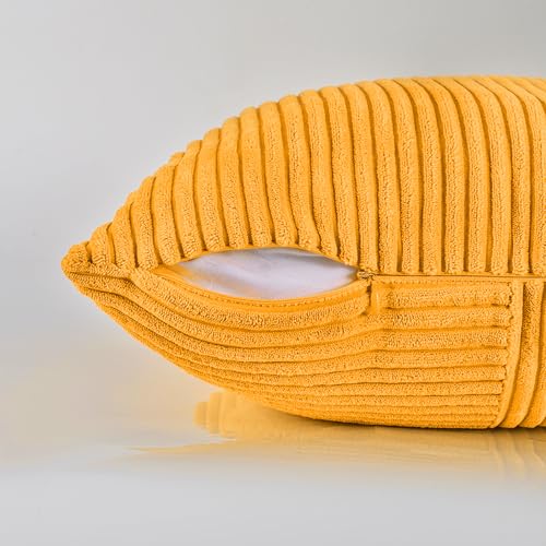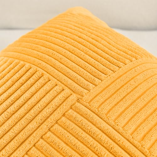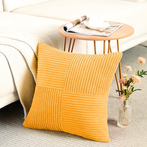 FDTERN 2er Set Gelb Kordsamt Kissenbezug 45x45CM Weich Moderne Dekorative Kissenbezüge Kissenhülle Dekokissenbezug Sofakissen Dekokissen Boho Herbst Deko für Sofa Schlafzimmer Wohnzimmer Balkon