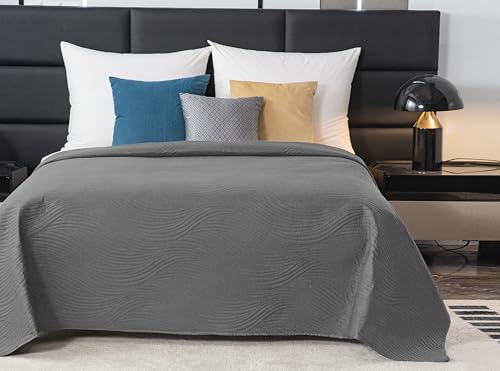FEBE Tagesdecke Bettüberwurf 220×200 cm Grau Überwurfdecke Sofadecke Sofabezug Flauschige Mikrofaser Raumdeko Überwurfdecke