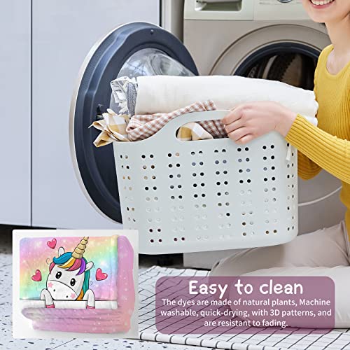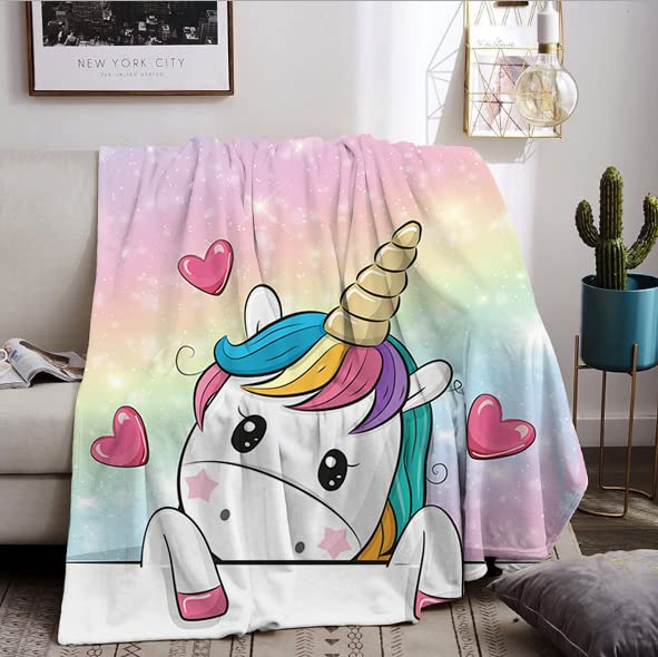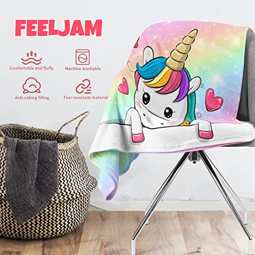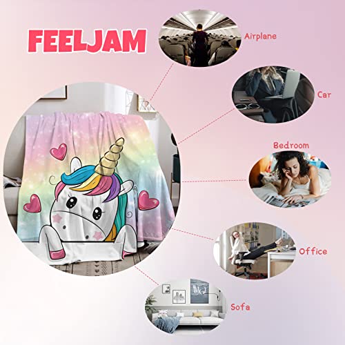 FEELJAM Einhorn Decke kuscheldecke pinkes, Flanell Weich Fleecedecke für Mädchen Flannel Blanket, Kinder kuscheldecke, Sofadecke, Wohndecke mikrofaser (Regenbogen, 150 * 200)
