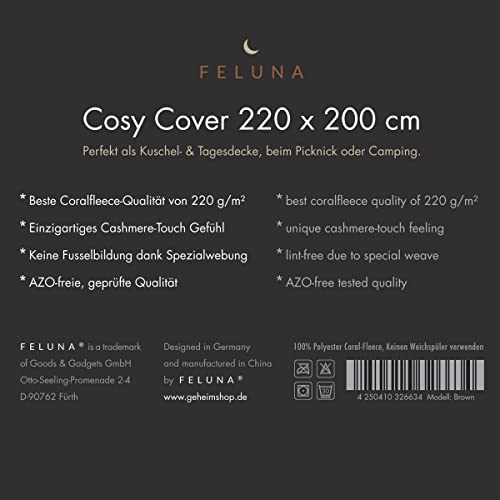 Feluna® Kuscheldecke XXL Mikrofaser-Decke Tagesdecke Wohndecke mit Kaschmir-Touch 220 x 200 cm – Braun