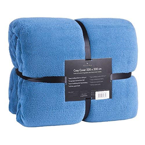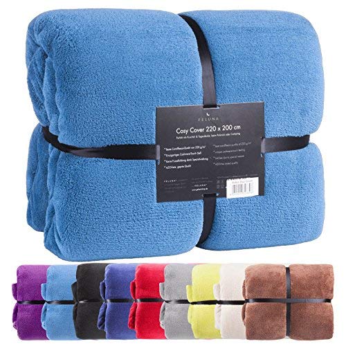 Feluna® Kuscheldecke XXL Mikrofaser-Decke Tagesdecke Wohndecke mit Kaschmir-Touch 220 x 200 cm – Türkis-Blau
