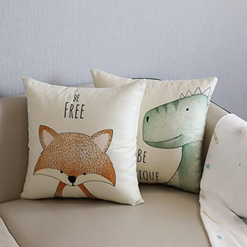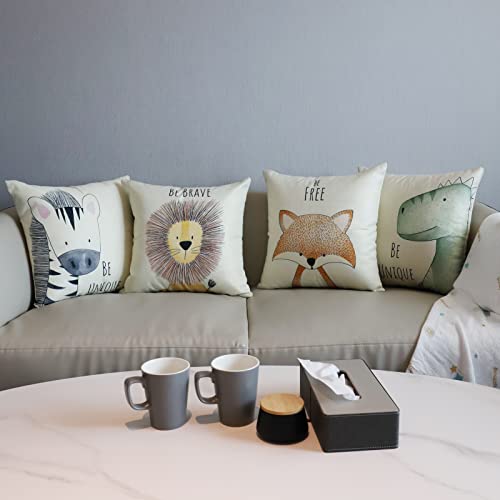 FenFang Leinen Kissenbezug 45×45 cm, Sofa Kissen Bezug 4er Set, Dekorative Kissenbezüge Kopfkissenbezug mit Reißverschluss, Kissenhülle Couchkissen Dekokissen Bezug Fall Zierkissenbezüge Beiges Tier
