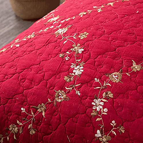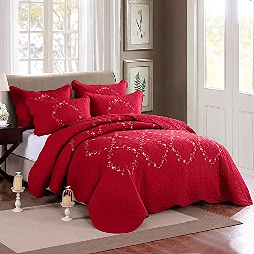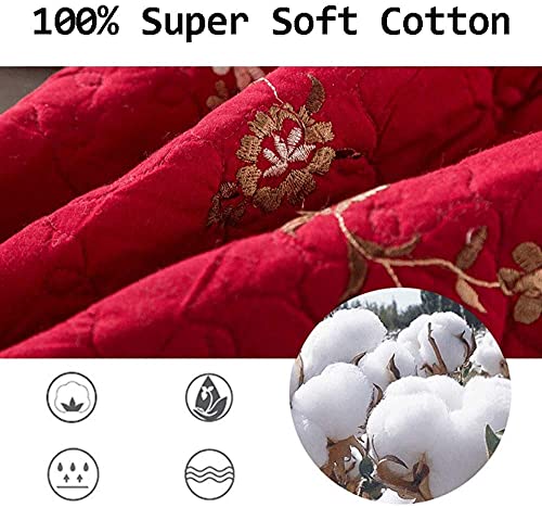Festive Red Bed Cover Quilt Throw Double 100% Cotton Quilted Bedspread 3 Piece Bedding Set Home Décor Chic Embroidery Multifunction
