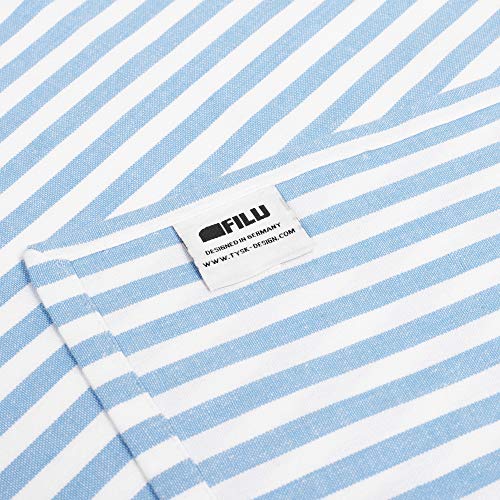 FILU Kissenbezug 50 x 50 cm 2er Gesindel (Farbauswahl) Hellblau / Weiß gestreift Kissenbezug Kissenbezug Sofakissen Dekokissen Sitzkissen 100% Baumwolle Dekoration anstelle jeden All Garten und Terrasse Inhalt: 2 x Original Filu Kissenbezüge 50 x 50 cm allesamt feinem Baumwollstoff. Design: Zeitloses Karodesign im Landhausstil in durchgefärbter Qualität. Dekorieren Sie Ihr Sofa, Ihre Couch, Ihren Sessel und Ihren Stuhl. Dekoration: Bringt Gemütlichkeit in jedes Zuhause und verschönert Esszimmer, Wohnzimmer, Küche, Garten und Terrasse. Mit dem schlichten Design passen die Kissen d’accord zu einem skandinavischen Einrichtungsstil. Qualität – einfaches Anziehen durch Hotelverschluss – lange Alterungsbeständigkeit ohne Reißverschluss und ohne Knopf. Dank einer Abseitsposition schweren und hochwertigen Qualität sind die Kissen langlebig und langlebig. Material: 100 % Baumwolle, 100 % Baumwolle. Waschbar bei 40 Abstufung, farbecht und einlaufsicher. Die Kissen sind durchgefärbt und durchgewebt, sodass die Farbe beim Abwaschen aneignen bleibt.