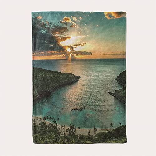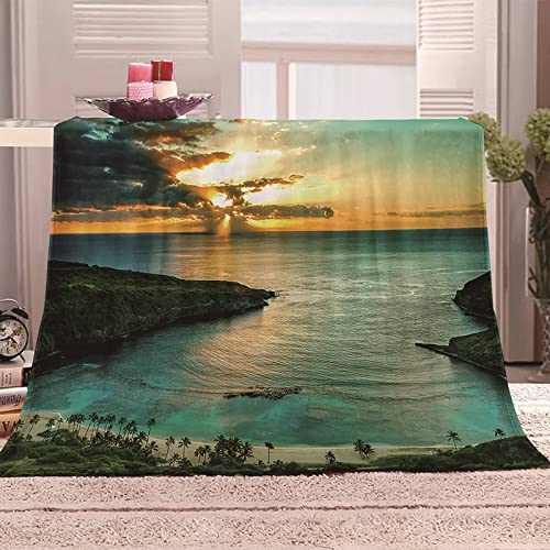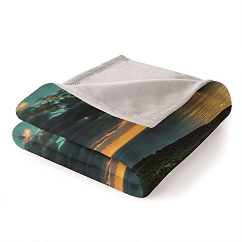 Flanelldecke Orange, Blanket Decke Blau Kuscheldecke Meer Der Untergehenden Sonne 180x220CM Weich Warm Wohndecke Sofa Bett Geschenk