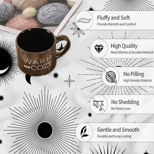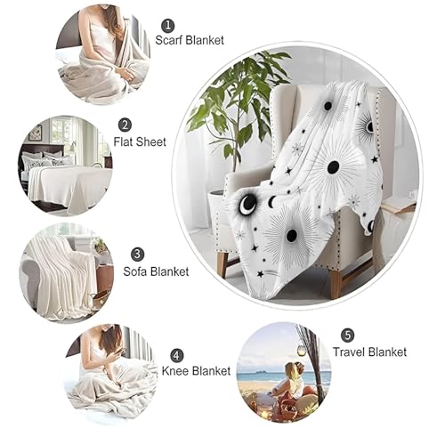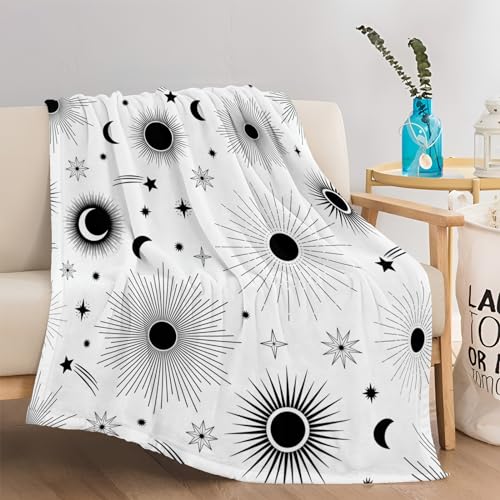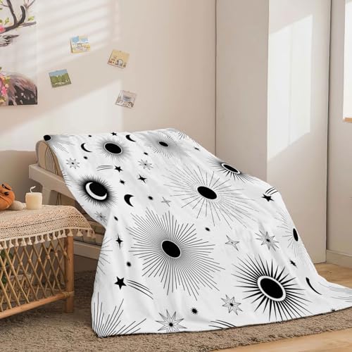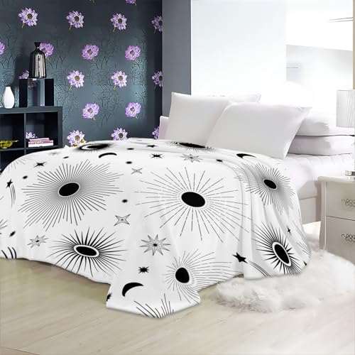 Flanelldecke Sonne-Mond-Sterne-Druck Kuscheldecke 100x130cm, Fällt Nicht ab Fleecedecke, Soft Weiche Wohndecke Warm Weiß Flauschige Decke TV-Decke Sofadecke oder Bettüberwurf