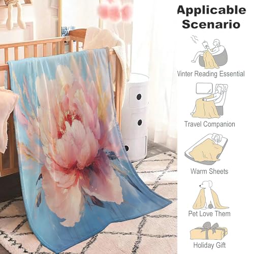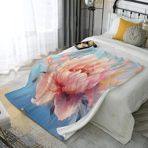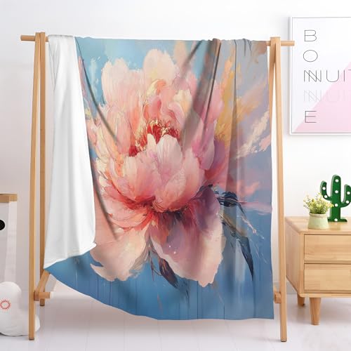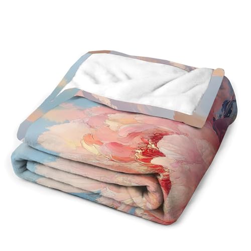 Flauschig Decke Fleecedecke – Wohndecke Warm Winter Weich, Rosa Pfingstrose Sofadecke Decke Couch Blanket, Blumen Decken 220X240Cm, Sofa Überwurfdecke, Für Schlafzimmer Büro