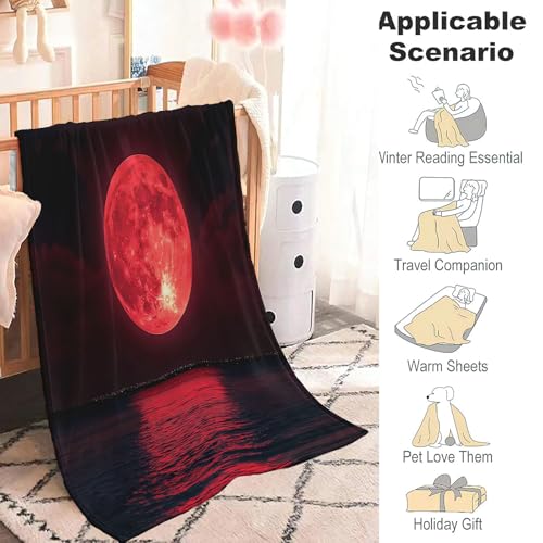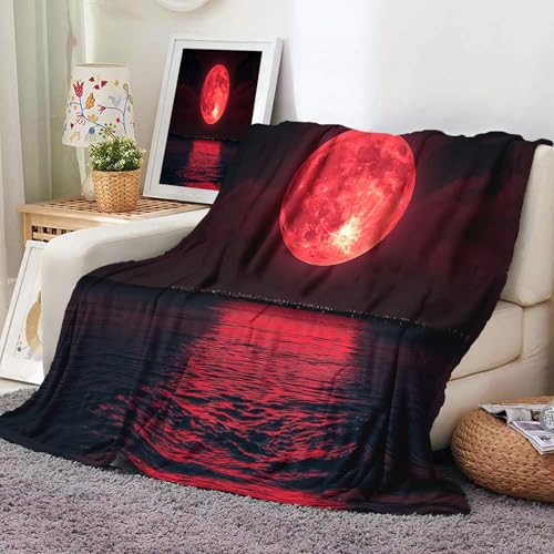 Flauschig Decke Fleecedecke – Wohndecke Warm Winter Weich, Rote Sonne Auf Dem Meer Sofadecke Decke Couch Blanket, Fantasie Decken 220X240Cm, Sofa Überwurfdecke, Für Schlafzimmer Büro