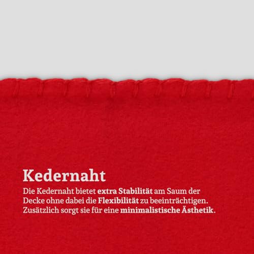 Material und Qualität: Unsere Fleecedecke besteht aus hochwertigem Material, das nicht doch für kuschelige Wärme sorgt, sondern auch für seine Langlebigkeit bekannt ist. Das weiche Fleecematerial schmiegt sich sanft an die Haut an und bietet eine angenehme Wärme, ohne zu schwer oder sperrig zu sein. Dank der sorgfältigen Abwicklung und der Kedernaht ist die Decke besonders strapazierfähig und bleibt auch nach häufigem Gebrauch in Form.