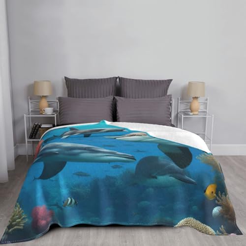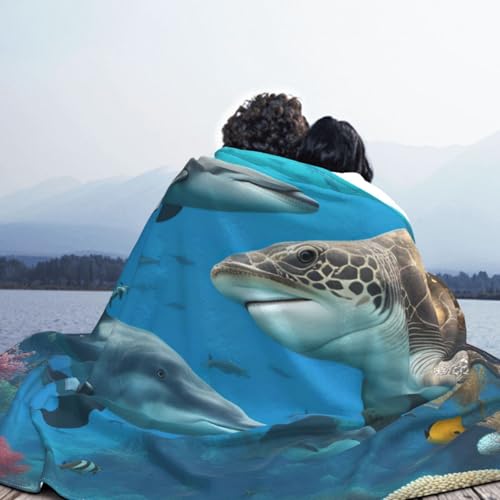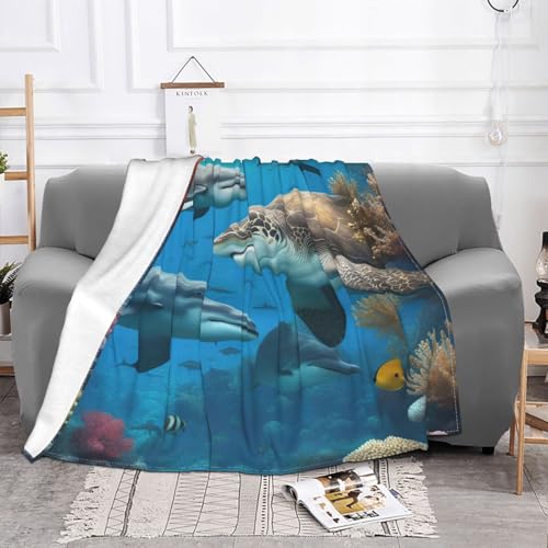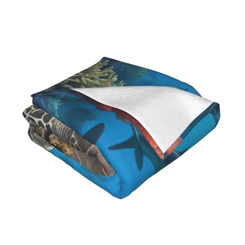 Leicht und kompakt: Diese leichte Decke mit Delfinen, Meeresschildkröten, Hai, Oktopus, Korallenriff, kann leicht in eine kompakte Größe gefaltet werden, wodurch sie perfekt für Reisen, Camping oder als gemütliche Couchdecke ist. Einfach zu transportieren und aufzubewahren.
