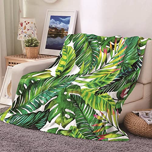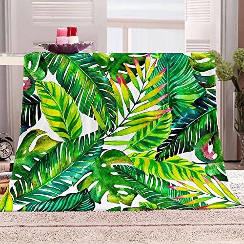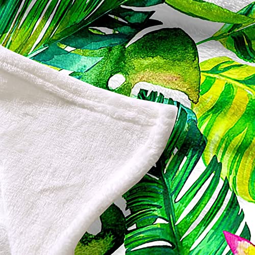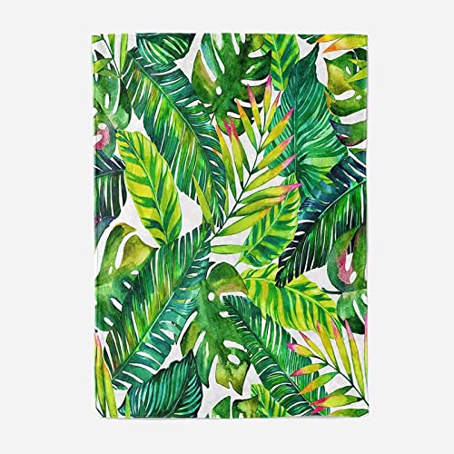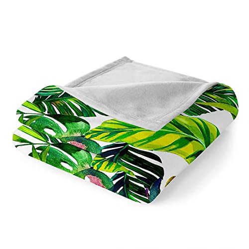 Fleecedecke Winter, Kuscheldecke Gelb Gemustert Flanell Grün Tropische Pflanzen Flanelldecke Blanket 180x220CM Wohndecke Sofa Bett Geschenk