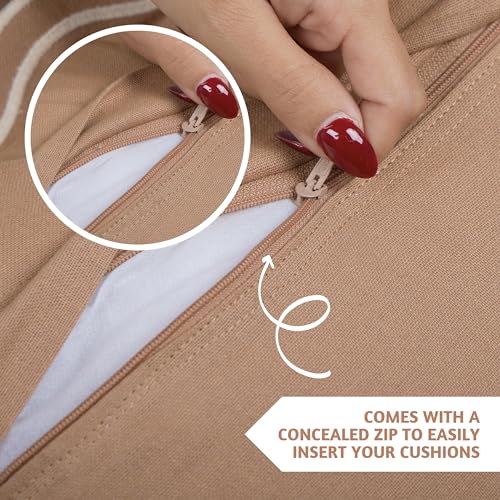 Verleihe deinem Wohnbereich mit diesen Kissenbezügen mehr Charme und Stil. Dieses Set mit 2 Kissenbezügen in ca. 30 x 50 cm wird mit unbegrenzt Liebe zum Detail aus 100 % Baumwolle hergestellt, die sich weich und luxuriös anfühlt. Mit ihrem einzigartigen Bogenkanten-Design sind diese Kissenbezüge ein echter Blickfang und werden zum Mittelpunkt deiner Inneneinrichtung. Das aufwendige Bogenkanten-Design verleiht jedem Raum einen Hauch von Eleganz und Raffinesse und schafft ein Boho-inspiriertes Ambiente, das sowohl trendy als auch zeitlos ist. Diese Kissenbezüge werten nicht hinwieder die Ästhetik deines Wohnzimmers auf, sie bieten auch außergewöhnlichen Komfort und Halt. Das hochwertige Baumwollmaterial der Kissenbezüge ist garantiert strapazierfähig und macht diese Bezüge perfekt für den täglichen Gebrauch. Beim Entspannen auf der Couch, Lesen eines Buch oder Bewirten von Gästen, diese Kissenbezüge bieten ein gemütliches und einladendes Sitzerlebnis. Diese rechteckigen Kissenbezüge für Standardkissen mit einer Größe von ca. 30 x 50 cm lassen sich dank des praktischen verdeckten Reißverschlusses leicht anbringen und abklingen. Dies ermöglicht eine problemlose Pflege und Reinigung und macht sie zu einer praktischen Kür für vielbeschäftigte Haushalte. Die Vielseitigkeit dieser Boho-Kissenbezüge ermöglicht es, sie nahtlos in verschiedene Einrichtungsstile zu integrieren. Ob du eine rustikale Einrichtung im Landhausstil oder einen modernen Look bevorzugst, sie verarbeiten mühelos jedes Ambiente.