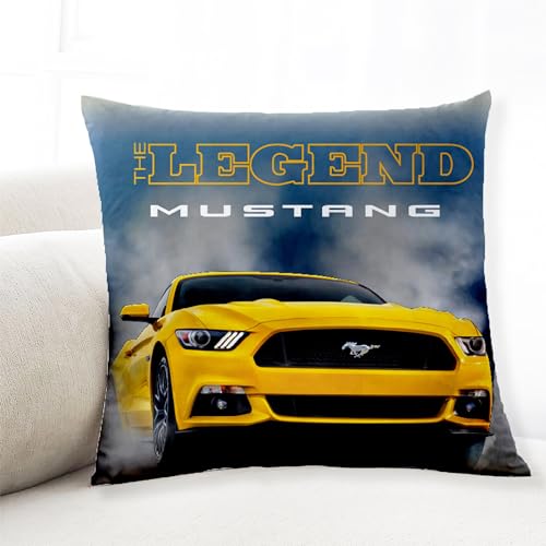Ford Mustang Kissen Legend Gelb / Blau 40 cm x 40 cm Auto-Kissen Reisekissen Pony US Muscle Car Dekokissen Zierkissen Kopfkissen Polster Shelby GT Stang Fastback Kuschelkissen pass. zur Bettwäsche