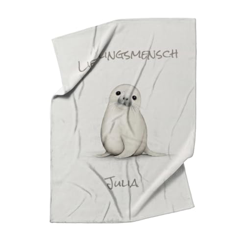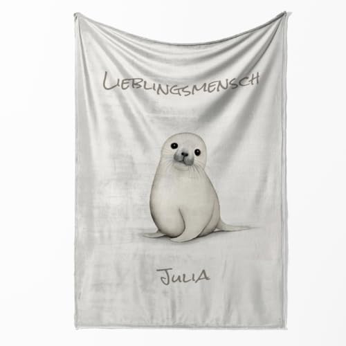 fotobar Kuscheldecke Kleine Robbe beige 140 x 200 cm