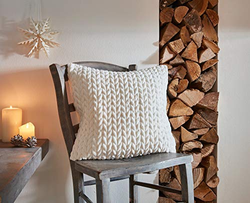 Kissenhülle „Zopfmuster“, Sahne, Abseite monochromatisch, verdeckt eingearbeiteter Reißverschluss, 100% Polyester, Metrik: 45 x 45 cm, passende Innenkissen Verfahren.Nr. 33.016.4 ferner Verfahren.Nr. 33.016.8