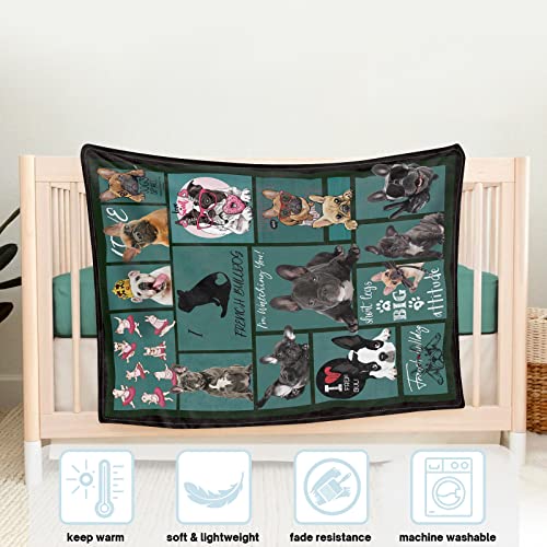 Einzigartiges Design: Die Domgoge Französische Bulldogge Decke ist ein einzigartiges Produkt, das Funktionalität mit Stil verbindet, mit vielen niedlichen französischen Bulldoggenmustern und lustigen Sätzen, wie „Ich beobachtete dich“ und „kurze Beine, Nur große Haltung“, die ein Muss für jeden französischen Bulldoggenliebhaber ist; der dunkelgrüne Hintergrund und der hochwertige Edition sorgen dafür, dass das Design über Jahre lebendig und schön bleibt