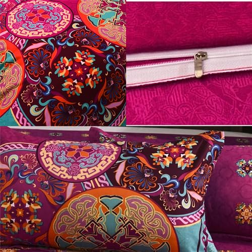 Freyamy Bohemian Kissenbezug 80 x 80 cm 2er Set Boho Style Rosa Pink Türkis Bunt 100% Mikrofaser Kissenbezüge Kopfkissenbezug 80×80 cm mit Reißverschluss 2 Stück